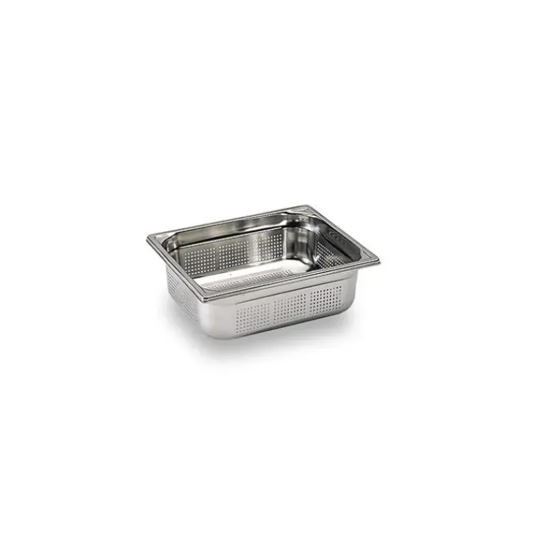 Le bac inox GN 1/2 possède des perforations de 3 mm sur le fond et sur les côtés. Cela lui permet d’offrir une cuisson vapeur homogène ou d’égoutter efficacement les aliments. Selon les préparations prévues, chacun pourra adapter son plan de travail en choisissant le bac gastro complémentaire. Par exemple, le bac inox GN 1/2 va de pair avec deux bacs inox 1/4. Cet ensemble peut être complété par le bac gastro GN 2/3 et GN 1/3.