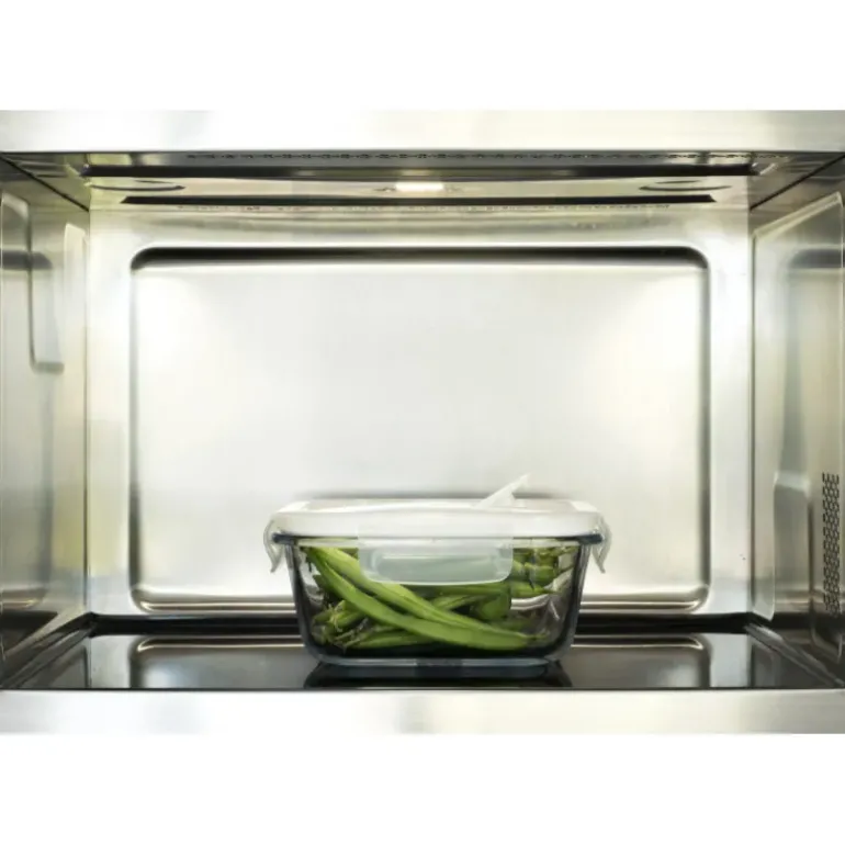 Conçue pour un usage quotidien, la boîte en verre 100% étanche est un véritable indispensable puisqu’elle est compatible avec le four (sans couvercle), le micro-ondes (avec valve vapeur ouverte), le congélateur, le réfrigérateur et enfin le lave-vaisselle (sans couvercle). Cette adaptabilité provient de la résistance du verre borosilicate du récipient, associé à un couvercle en plastique sans Bisphénol A (BPA) équipé de 4 clapets latéraux, d’un joint en silicone amovible et d’une valve vapeur qui permettra d’éviter les éclaboussures dans le micro-ondes.