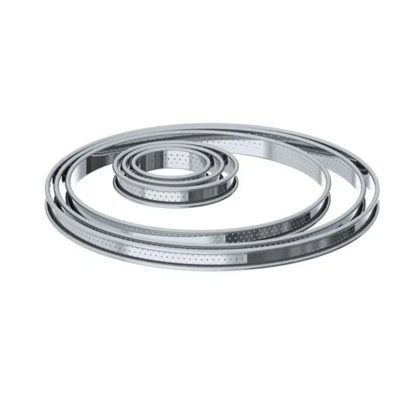 Le cercle à tarte en Inox De Buyer est présenté avec des bords roulés pour un meilleur maintien et des perforations pour chasser l’air lors de la cuisson et obtenir une pâte lisse, croustillante et parfaitement cuite.