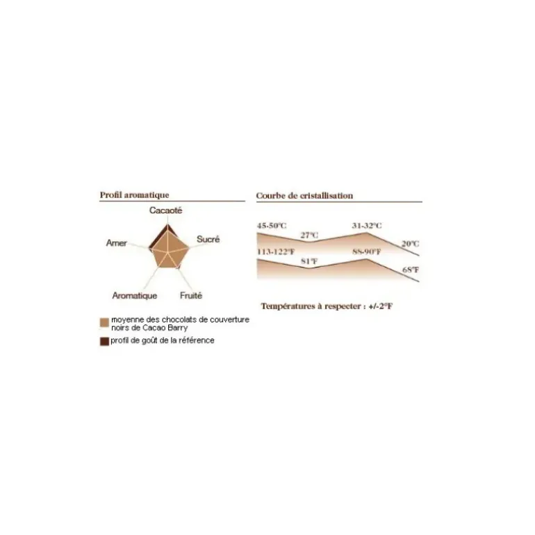 - Teneur en cacao : 64% min