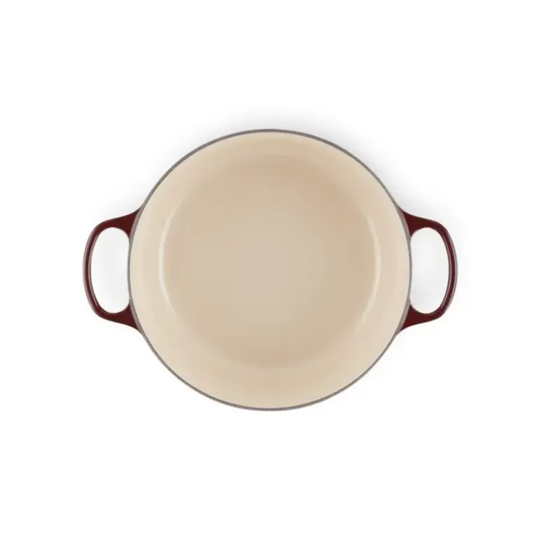 Emblème de la marque Le Creuset, produit phare conçu en France, la Cocotte en Fonte Ronde 28 cm Garnet Bouton Doré Le Creuset Signature est un véritable atout pour votre cuisine.