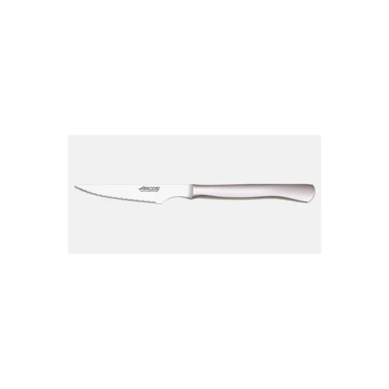 Entièrement fait d’acier inoxydable, le Couteau à Steak Monobloc Arcos trouvera sa place sur les tables des restaurants comme sur les tables des particuliers. Sa conception monobloc lui offre des lignes sobres et modernes, tout en renforçant sa solidité. La lame du couteau à steak Arcos mesure 11 cm de long et dispose de petites dents afin de couper la viande sans effort.