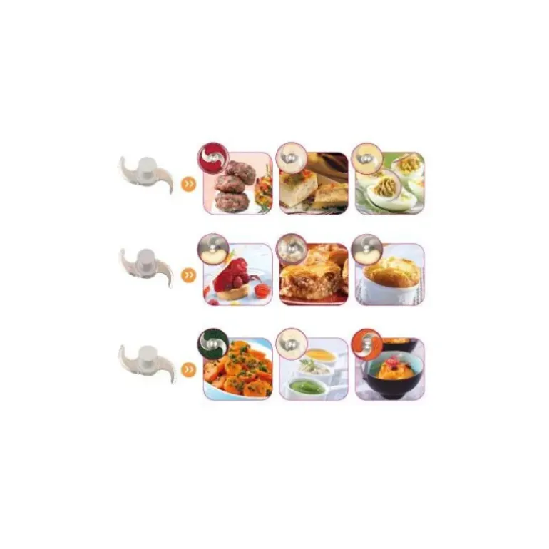- Couteau lisse avec capuchon démontable : gros et fins hachages + sauces, émulsions