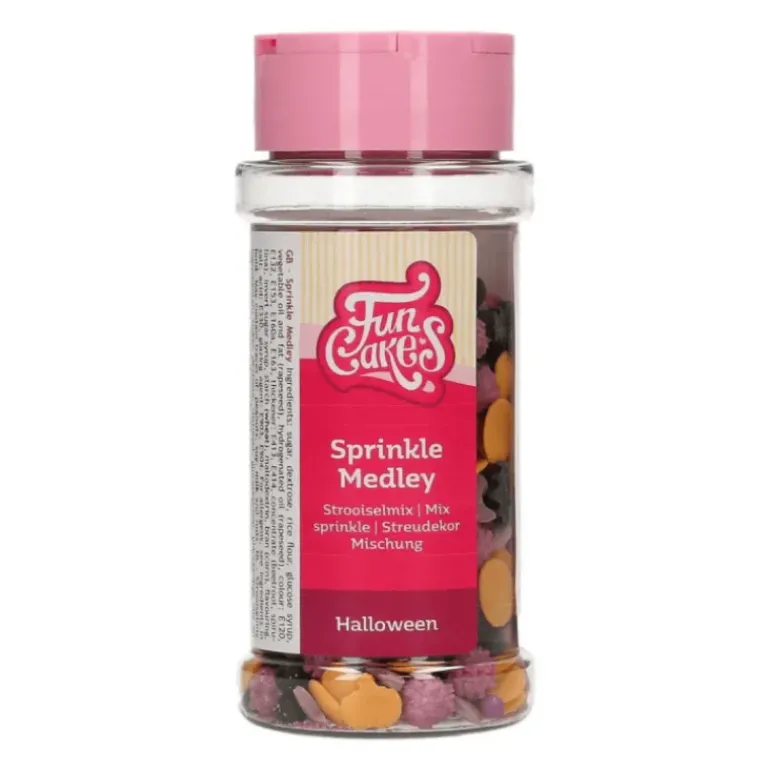 Proposées dans un format de 50 g, ce mélange de décoration en sucre se compose de citrouilles et chapeaux de sorcières mais également de décors sucrés plus classiques comme des palets et billes en sucres déclinés dans les couleurs phares d’Halloween : l’orange, le noir et le violet.