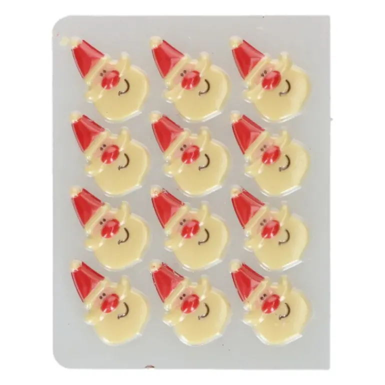 Fabriqué en chocolat blanc à base de chocolat belge, ce lot se compose de 12 décorations chocolat joliment décorées de motifs Père Noël pour coller au thème du réveillon jusqu’au bout du détail. Ces 12 décors chocolat identiques trôneront fièrement sur vos desserts, que ce soit sur la bûche de noël ou encore sur vos desserts individuels et cupcakes de Noël.