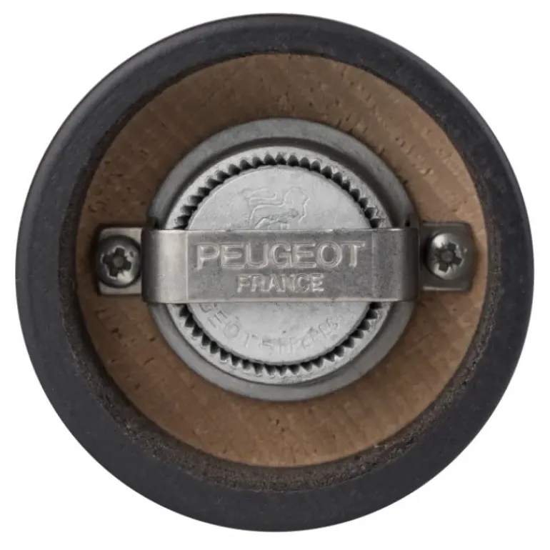 Le moulin à poivre et le moulin à sel Peugeot sont coiffés d’un bouton en acier brossé qui permet de régler la mouture. Plus le bouton est serré, plus la mouture est fine, et inversement.