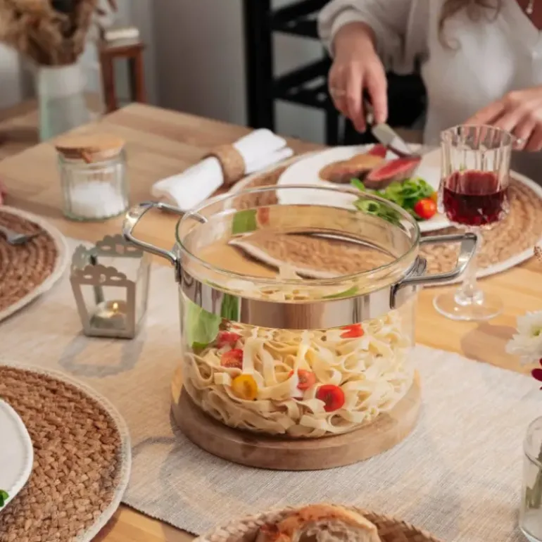 Le faitout en verre est l’alliance parfaite de l’esthétique et de la fonctionnalité, pour des repas réussis et sains, en toute simplicité. Compatible avec toutes les sources de chaleur, y compris l’induction (avec disque relais adaptateur), ce faitout cuisine bénéficie d’une anti-adhérence naturelle.