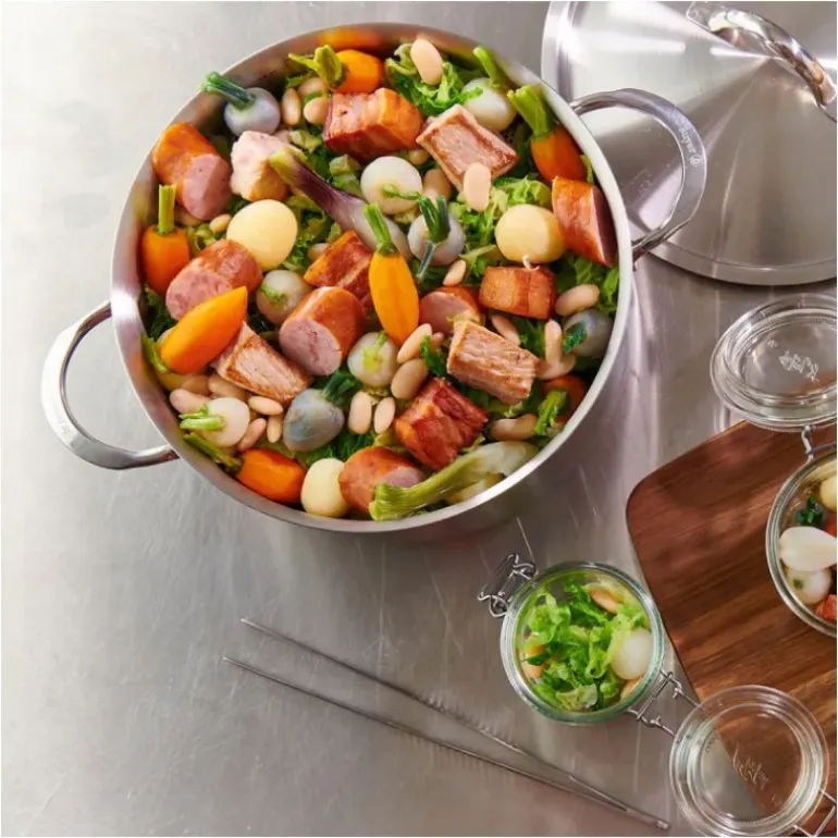 Faites mijoter votre viande, ou préparez une soupe avec une vraie maîtrise de la cuisson grâce à ce Faitout De Buyer composé d’un inox multicouches 3-ply. Ainsi la chaleur est conduite de manière homogène dans l’ensemble du corps de votre Faitout Alchimy.