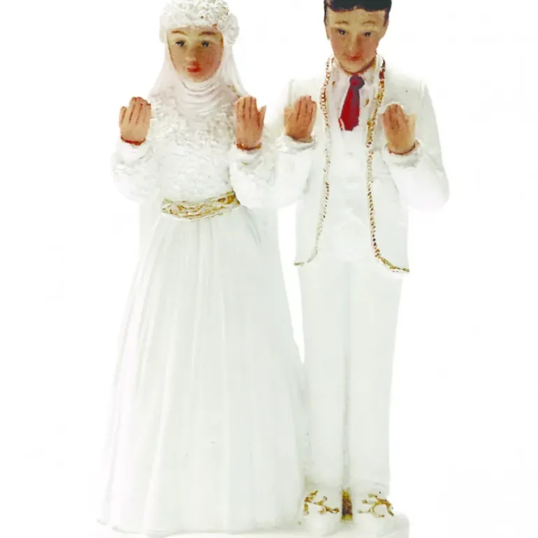 Traditionnelle, cette figurine de mariage oriental représente les mariés habillés d’une tenue de mariage traditionnelle.
