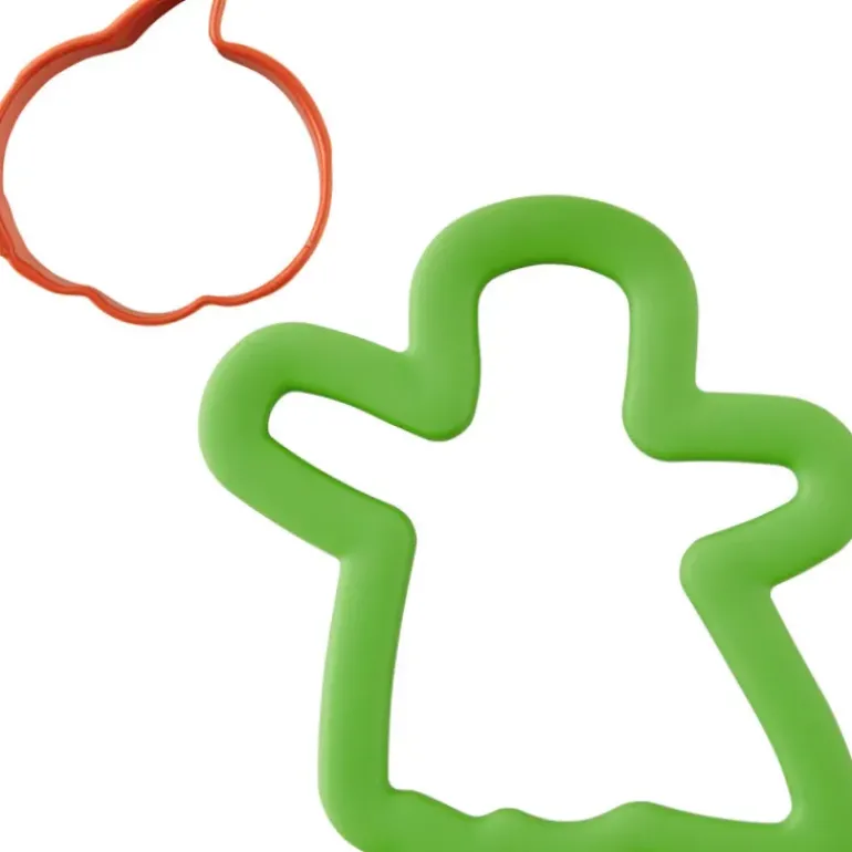A l’occasion d’Halloween, petits et grands pourront mettre la main à la pâte avec cet assortiment d’Emporte Pièce en Inox ! Celui-ci se compose d’un grand découpoir en forme de fantôme, et d’un petit découpoir en forme de citrouille. Le premier possède un revêtement vert qui offre une prise en main agréable pour les petits pâtissiers en herbe.