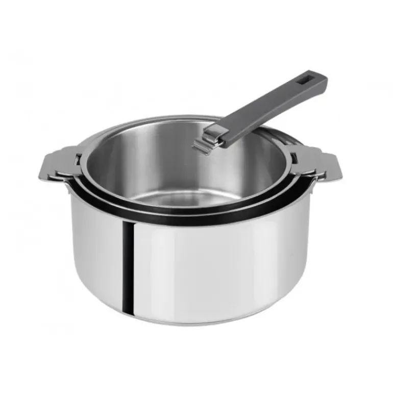 FIN DE SERIE Lot de 3 Casseroles inox avec Poignée Grise Mutine Amovible Cristel