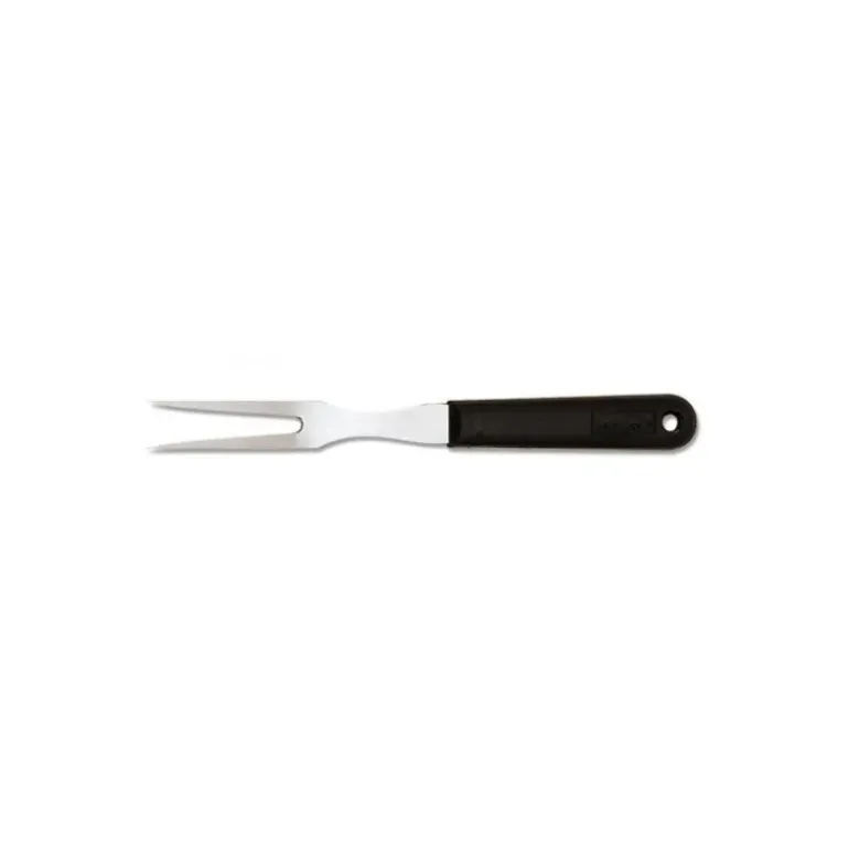 La Fourchette Inox STOP GLISSE Déglon se démarque par ses 2 dents incurvées. Vous pourrez vous en servir pour piquer des aliments mais aussi les soulever ou les coincer entre les 2 dents. De cette façon, le jus reste à l’intérieur de l’aliment qui ne se dessèche pas.