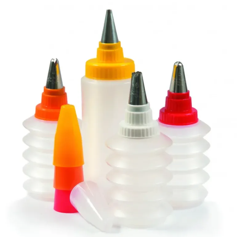 Ces 4 Flacons de décorations gâteaux pourront être utiles pour certaines préparations à cuire, comme la pâte à crêpe, la pâte à biscuits, les tuiles, etc… Vous pourrez ainsi leur donner les formes de votre choix !