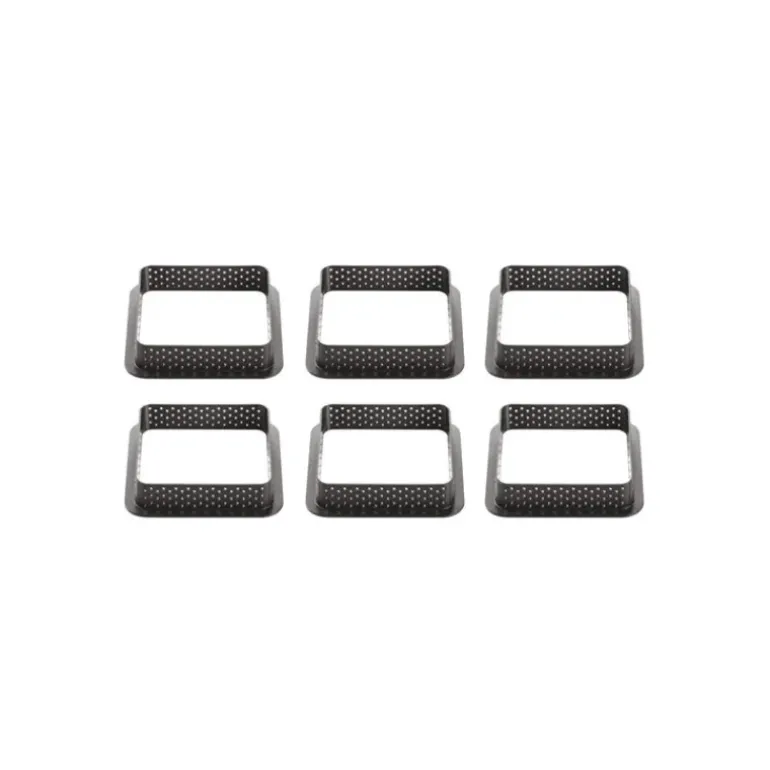 Réinventez l’univers de vos tartelettes habituelles à l’aide du Kit Moule Silicone 6 Tartelettes Carrées 80mm Silikomart Professional ! Avec ce kit d’ustensiles de pâtisserie, vos tartes rondes prendront la forme de tartes carrées grâce au moule silicone carré. Avec ses 6 empreintes, ce moule à tartelettes est idéal pour composer de superbes créations carrées. De plus, sa matière silicone lui offre une certaine souplesse et un entretien aisé en un passage au lave-vaisselle, votre moule carré ressortira comme neuf et sera à nouveau prêt à l’emploi ! Afin de rendre vos tartelettes plus design, le kit pâtisserie comprend un moule cadre perforé fait de matière composite. Les petits trous lui permettent une diffusion de la chaleur pour une cuisson des plus homogènes ! En outre, son démoulage est facilité et donne à la tartelette une forme des plus parfaites.