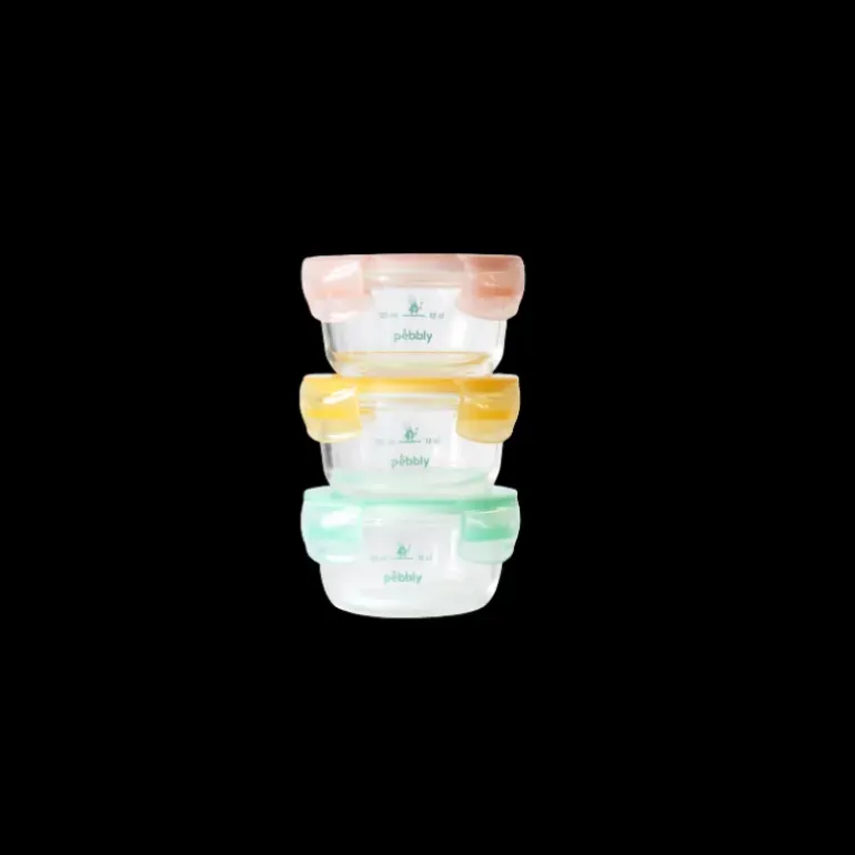 Lot 3 Boîtes de Conservation Rondes pour Bébé en Verre Graduées 240 ml Pebbly