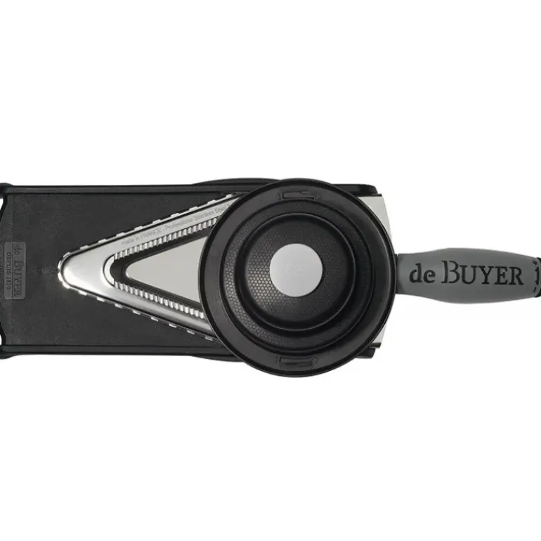 La mandoline De Buyer Noir est fournie avec un poussoir protecteur qui évitera tout contact de vos doigts avec la lame. Facile d’utilisation: enfoncez les légumes à couper dans les aiguilles du poussoir afin que ces dernières empêchent vos aliments de rouler lors de la coupe. La tige centrale sur le dessus du poussoir vous indique le niveau restant dans le chariot.