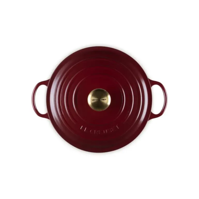 Marmite en Fonte 26 cm Garnet Bouton Doré Le Creuset Signature