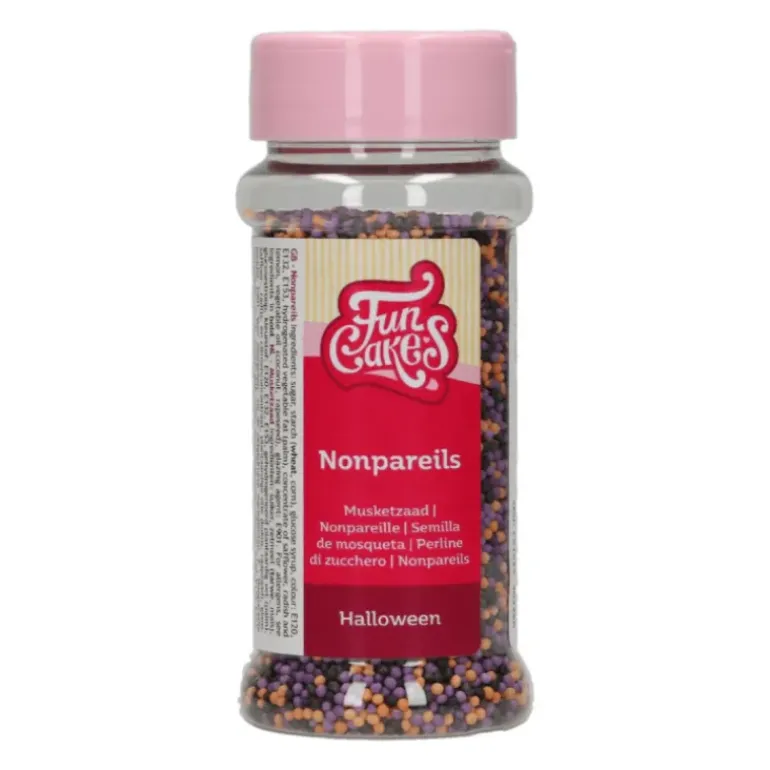 Funcakes a élaboré ce mélange de billes en sucre au teintes noire, orange et violette, parfait en guise de décoration gâteau halloween. Aussi appelée nonpareilles dans l’univers du cake design, cette décoration comestible apportera croquant et couleur à vos pâtisseries. Conditionnée dans un flacon saupoudreur, vous pourrez ainsi parsemer vos cupcakes halloween avec ces 80 g de décoration en sucre.