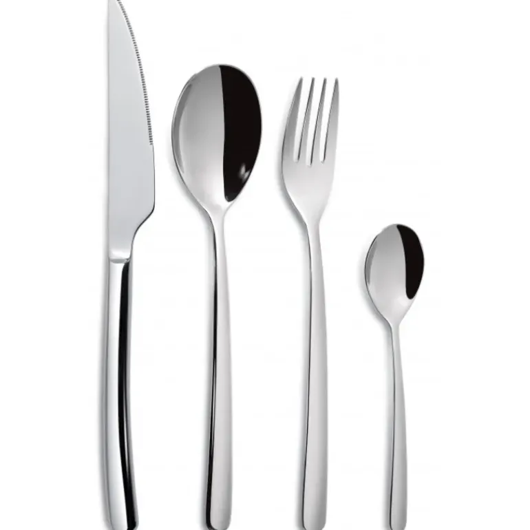 Dans le détail, elle se compose de 6 couteaux et 6 fourchettes de table, 6 cuillères à soupe et 6 cuillères à café. Le couvert de table CUBA Comas est fait en inox 18% et possède une épaisseur de 3 mm.