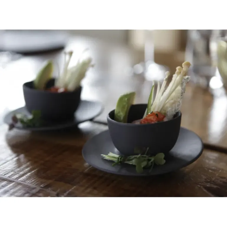 Pour une présentation originale de vos salades, sauces et crèmes ce mini bol 8cl en porcelaine Basalt de Revol sera votre meilleur allié.