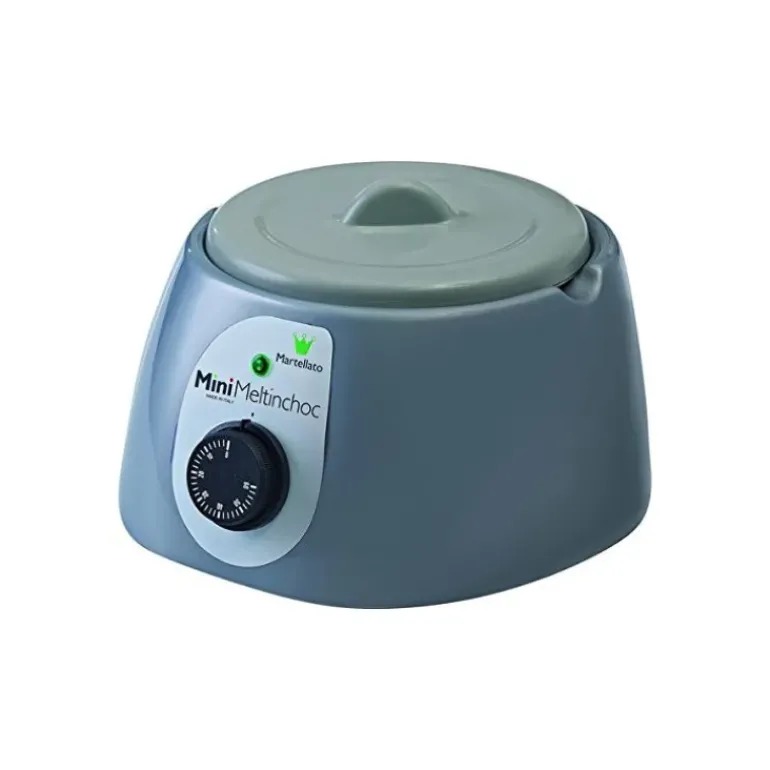 La mini trempeuse à chocolat grise vous permettra de garder votre chocolat de couverture fondu, fluide et à température de travail (prêt à être utilisé).
