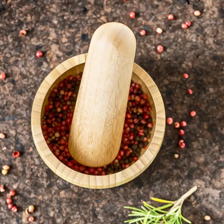 La forme du Mortier Cuisine est parfaitement adaptée pour que le Pilon Bambou puisse accéder à toute la surface du mortier. Muni de ce Pilon Mortier, vous pourrez faire ressortir toutes les saveurs de vos épices, pour des repas toujours plus savoureux.