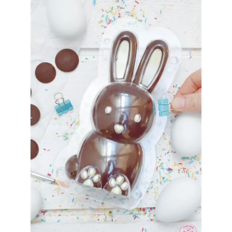 Ce moule lapin est composé de deux empreintes en ABS apte au contact alimentaire à assembler pour réaliser un délicieux lapin 3D en chocolat.