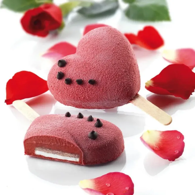 Moule à Glace Silicone 2 Mini Coeur avec bâtonnets SilikoMart
