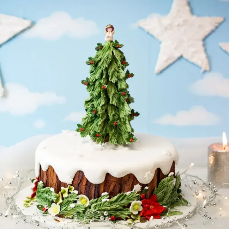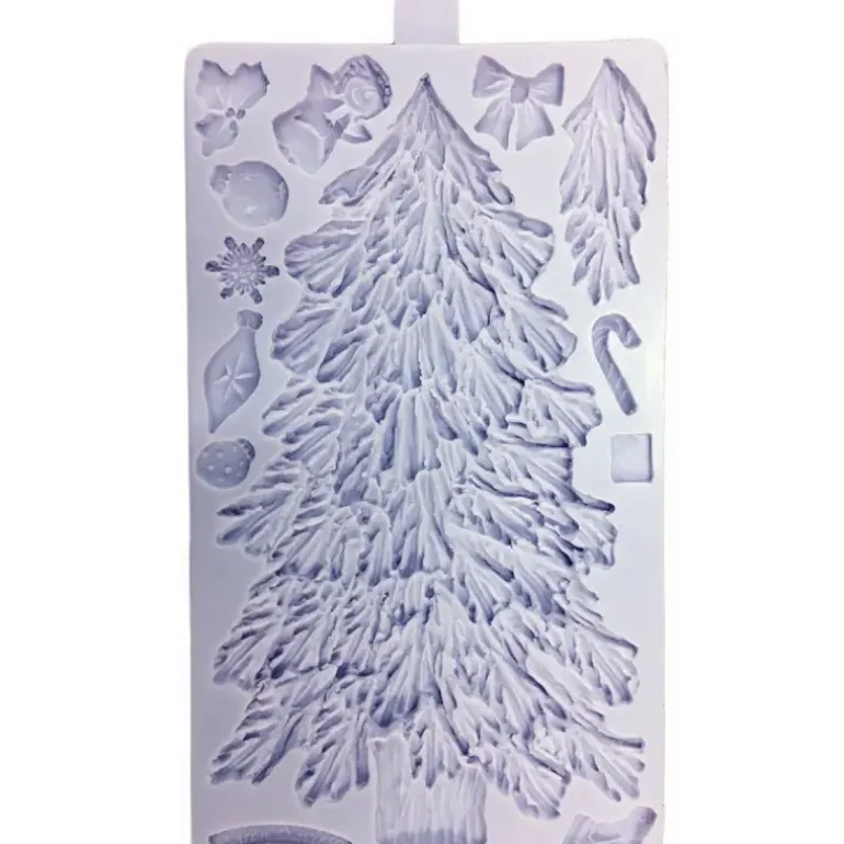 Ce moule en silicone de Noël est devenu un référence auprès des professionnels et amateurs de Cake Design notamment grâce à ses motifs très détaillés qui apportent une touche réaliste aux desserts. Ainsi, avec ce moule, nous vous invitons à réaliser ce grand sapin mais également les 10 petites décorations qui s’accordent parfaitement avec, comme: du houx, un ange, trois boules de noël, un flocon de neige, un noeud, un bâton de sucre d’orge, une chaussette ainsi qu’une branche de sapin pour donner du relief à votre arbre de Noël.