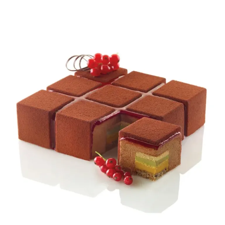 Conçu en silicone 100% platinium le Moule Silicone Carré Cubik 17,2 cm Silikomart Professional résiste à des températures comprises entre -60°C et +230°C.