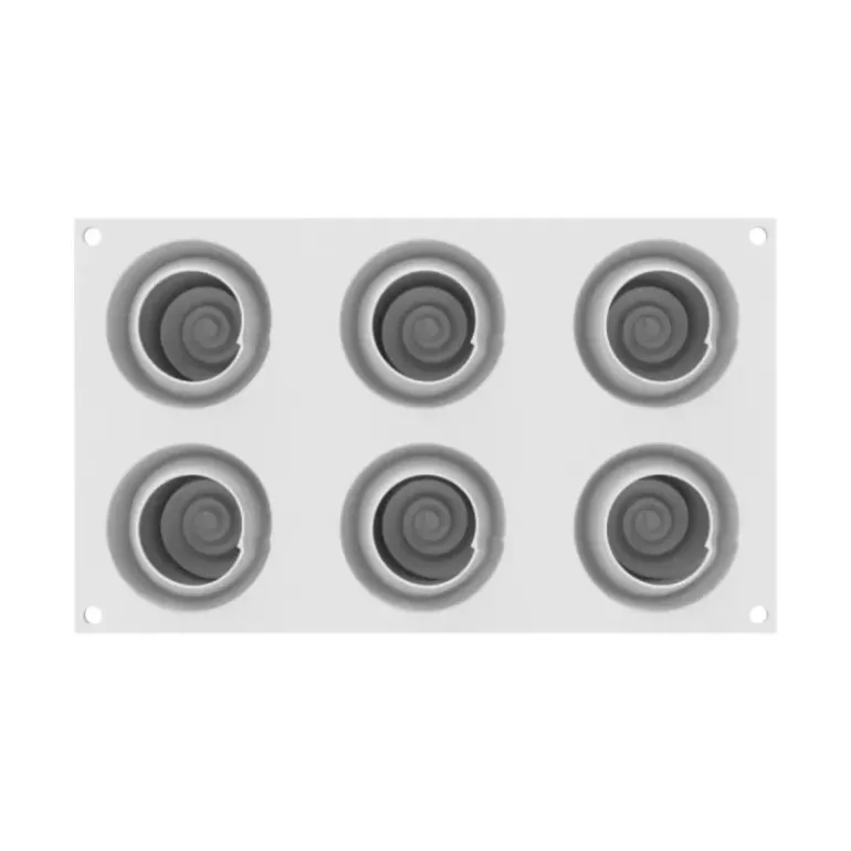 Ce moule à gâteau se compose de 6 empreintes identiques en silicone platinum, une matière de qualité professionnelle qui garantit un démoulage facile et parfait. Chaque empreinte dispose d’une contenance de 90 ml, soit une capacité totale de 540 ml pour le moule silicone complet.