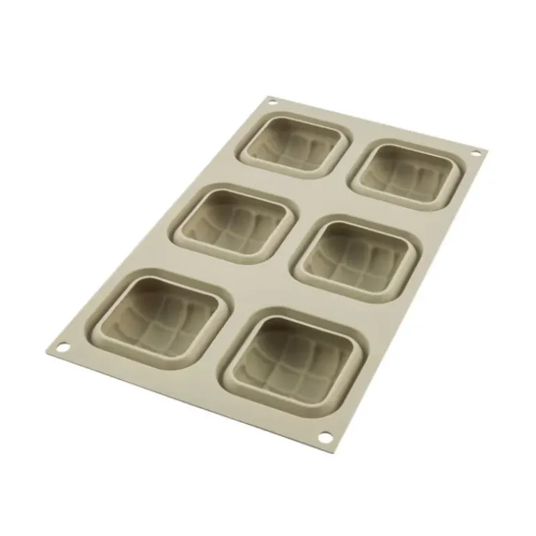 Le moule silicone Mini Eleganza Silikomart 3D Design comporte 6 empreintes, permettant de réaliser 6 desserts individuels de 7 x 7 cm. Après utilisation, il vous suffit de le mettre au lave-vaisselle.