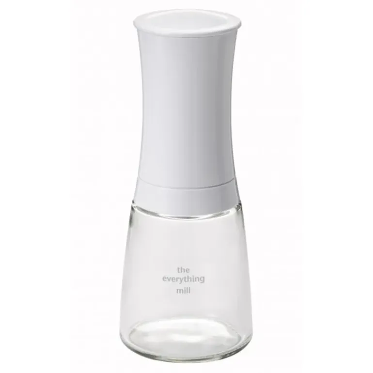 Sel humide, sel de mer, grains de poivre, graines (graines de lin, etc…), baies roses, épices, blé, épeautre, orge, etc… rien ne résistera au moulin universel réglable blanc de la marque Kyocera. Broyer des graines en cuisine devient un vrai plaisir.