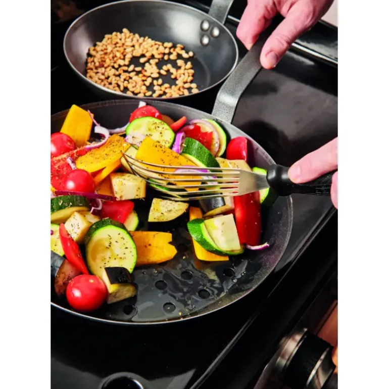 Ainsi, la Poêle en Tôle d’Acier De Buyer est parfaite pour griller, cuire, dorer et saisir vos aliments. De plus la matière avec laquelle est fabriquée cette Poêle à Frire française vous assure une diffusion parfaitement homogène de la chaleur. Le corps en tôle d’acier bleuie au carbone permet à cette poêle De Buyer d’avoir une non adhérence naturelle. Enfin, la queue feuillard rivetée vous assure une prise en main sûre et confortable.