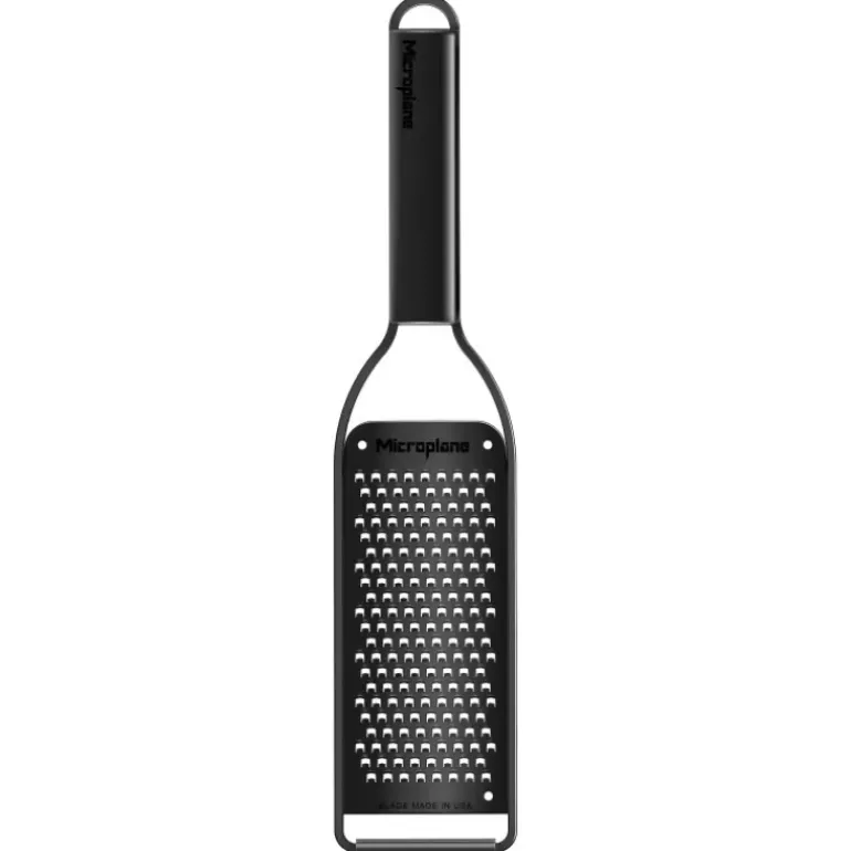 La Râpe Gros Grains Black Sheep de Microplane s’utilise pour râper du fromage, des carottes, du gingembre, de la noix de coco, des noix, du raifort et tout autre aliment similaire.