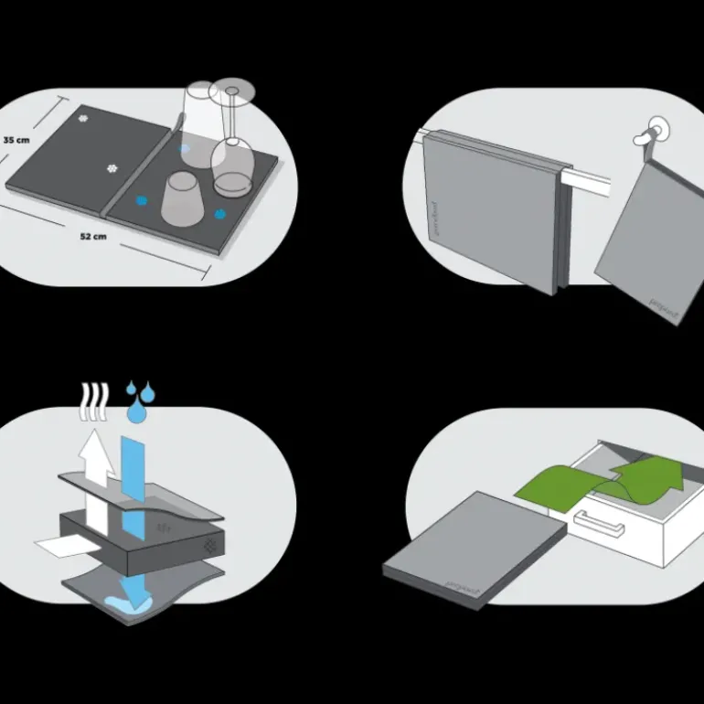 Facile à ranger, cet Égouttoir à Vaisselle se plie en deux et peut être ranger dans un tiroir ou accroché dans votre cuisine. Le fait qu’il puisse se plier en deux vous permettra également de l’étendre pour le faire sécher aisément. Ce Séchoir Vaisselle Antibactérien peut passer en machine pour être lavé.