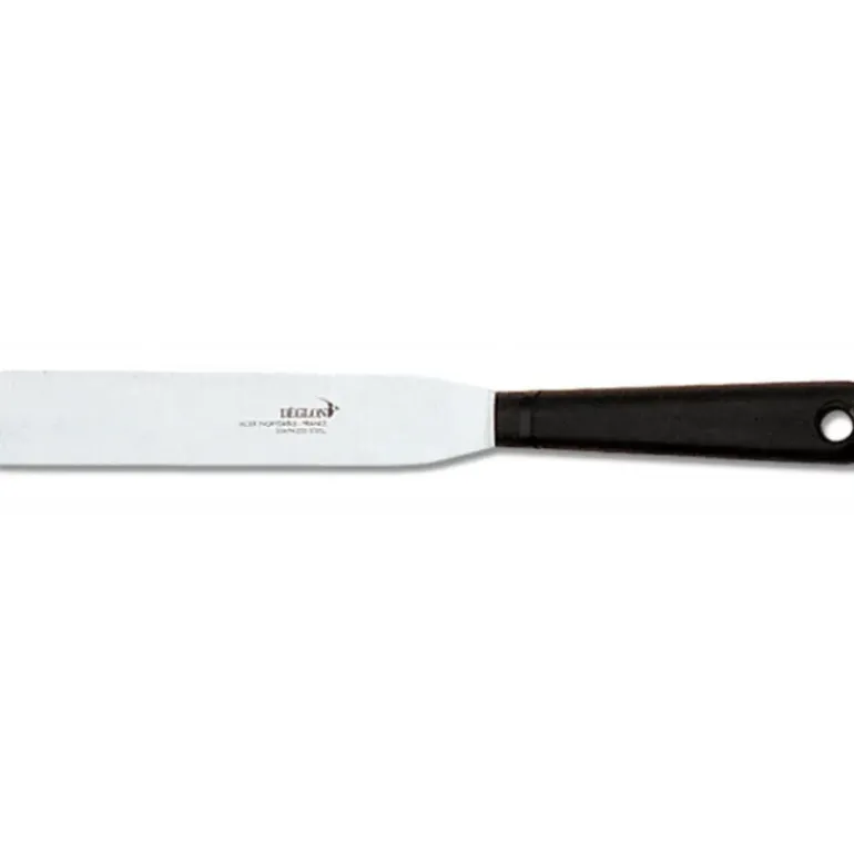 La spatule inox plate Déglon est disponible en 12 cm, 15 cm, 18 cm, 21 cm, 23 cm, 25 cm, 30 cm et 40 cm.