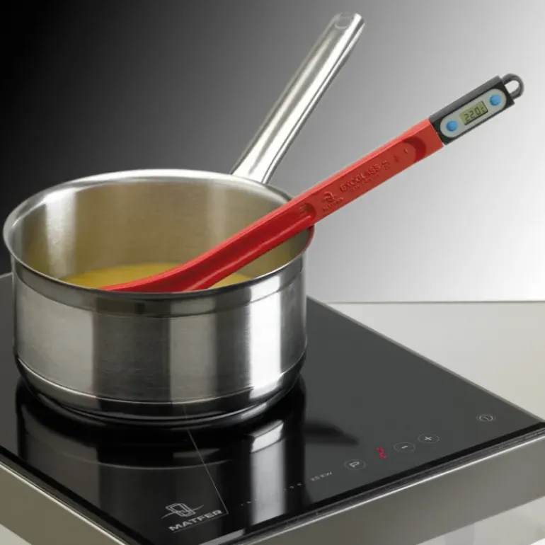 Remarque : Le thermomètre ne fonctionne pas sur une plaque à induction. Eteindre la plaque pour réaliser la prise de température.
