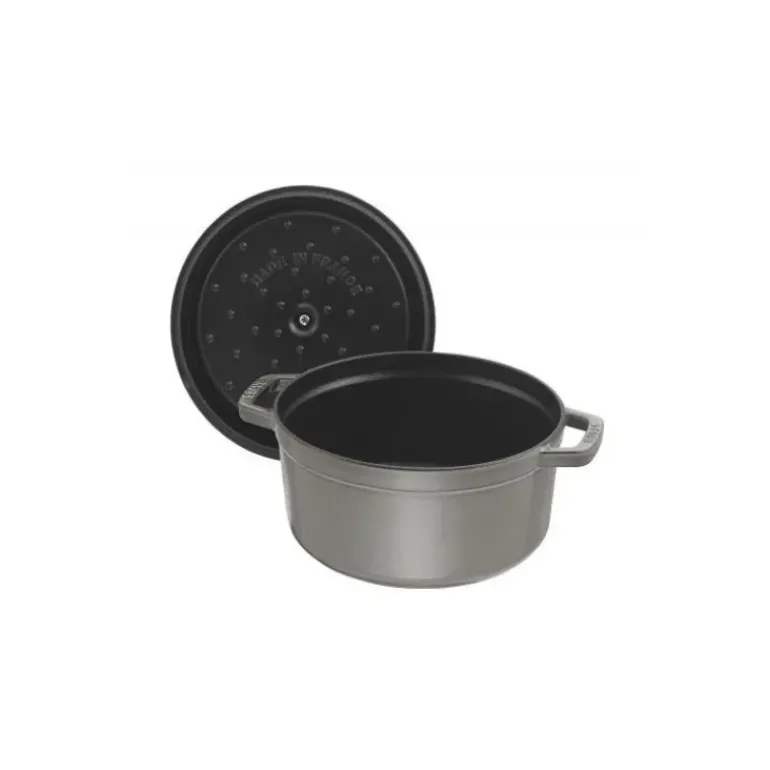 Enfin une cocotte en fonte ronde petit format idéale pour 1 personne ou un couple. Adoptez la cocotte Staub, entièrement en fonte et munie d’un revêtement en email noir à l’intérieur cette cocotte ronde vous assure des plats mijotés savoureux. Comment ? La fonte à l’origine de votre cocotte Staub permet de répartir uniformément et de maintenir la chaleur au sein de cette dernière pour une cuisson optimale de vos viandes, légumes … Cuisson en douceur assurée avec la cocotte en fonde pour préserver les nutriments présents naturellement dans tous vos aliments.