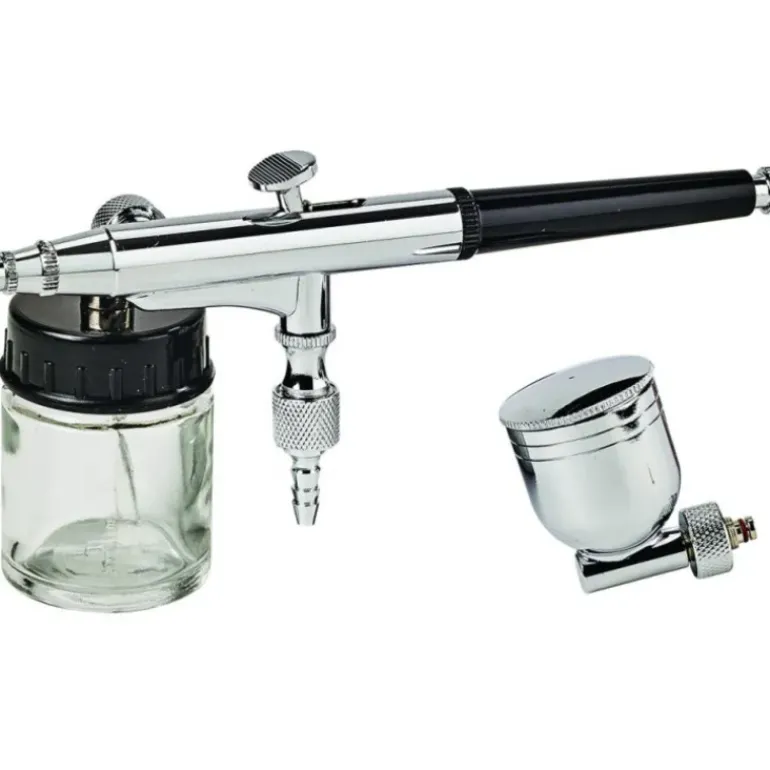 Cet Aérographe Sparmax Mallard Ferrière est fourni avec plusieurs godets à la contenance différente : un de 7 ml, et un de 22 ml détachable.