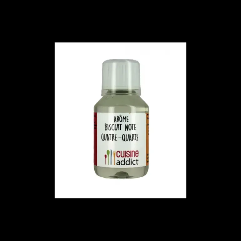 L’arôme Alimentaire Biscuit Quatre-quarts 1L Cuisineaddict vous permet avec seulement quelques gouttes, de parfumer vos desserts sucrés d’une douce saveurs de nos goûters d’enfance : le biscuit quatre quarts.