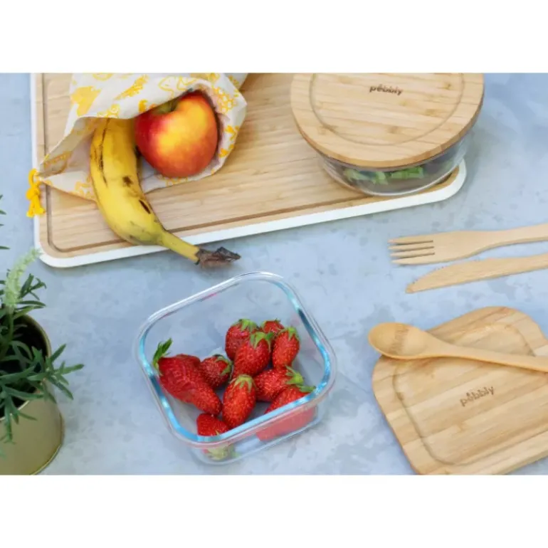 Boîte de Conservation en Verre et Bambou Carré 520 ml Pebbly