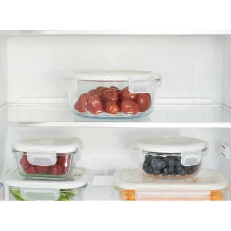 Le récipient de la boîte hermétique est en verre borosilicate sans Bisphénol A (BPA), offrant une grande résistance aux chocs thermiques. Ainsi, la boîte en verre passe au réfrigérateur, au congélateur, au four (sans couvercle) et au micro-ondes avec la valve vapeur ouverte, située sur le couvercle.