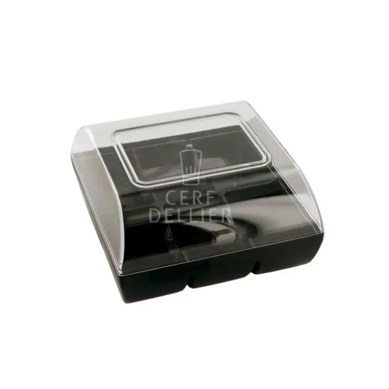 - Dimensions : 9,4 cm x 10 cm x (hauteur) 5,3 cm (couvercle compris)
