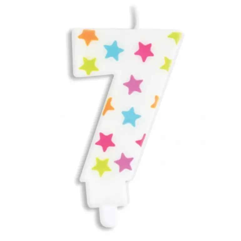 Bougie Chiffre 7 Blanche à Etoiles Multicolores Scrapcooking