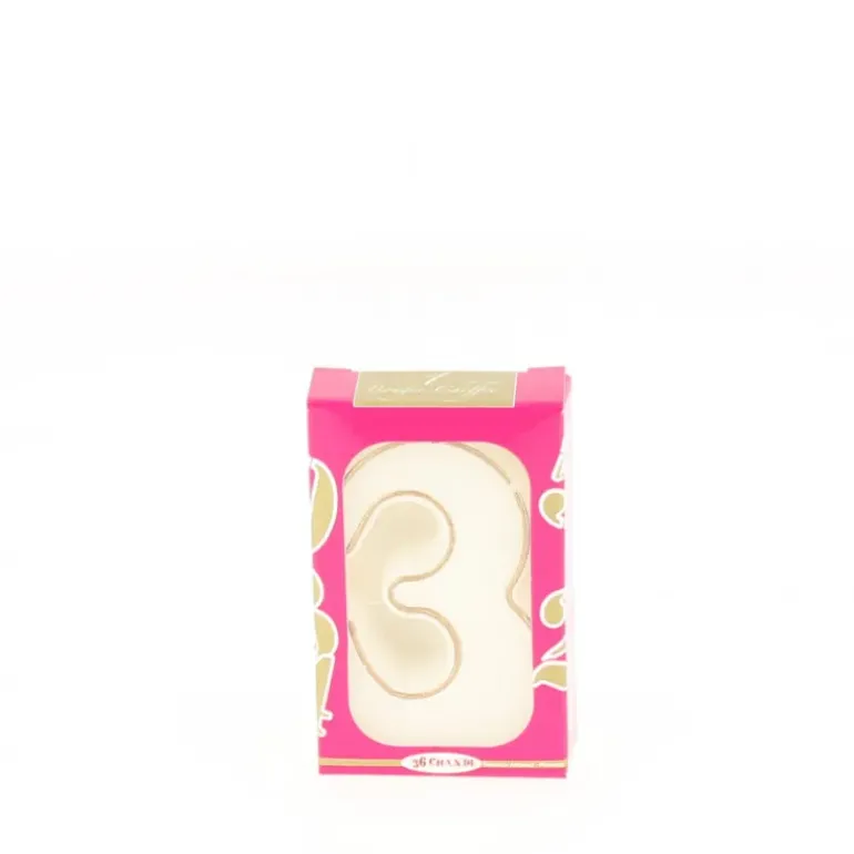 Bougie d’anniversaire chiffre 3 blanche avec filet doré