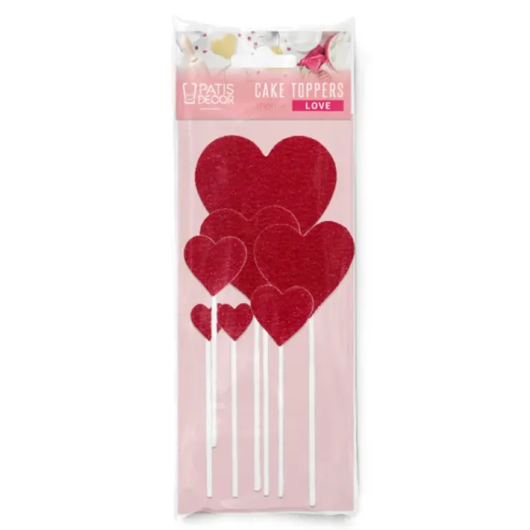 Cake Topper Cœurs Rouges (x7) Patisdécor