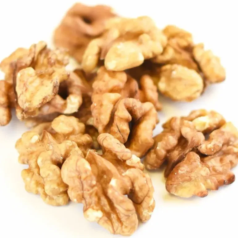 - Cerneaux de noix de qualité supérieure séparés en deux parties sensiblement égales et intactes avec un minimum de 85% de moitié.