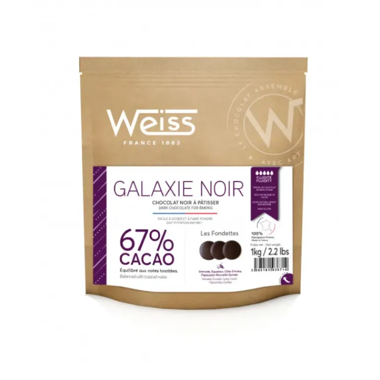 Pour un chocolat noir d’exception, choisissez le chocolat noir 67% 1 kg Galaxie Weiss pour toutes vos pâtisseries !