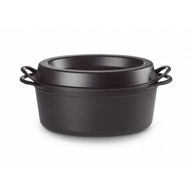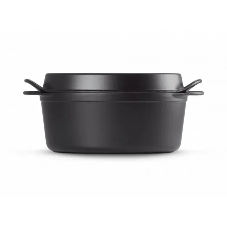 Le Creuset est une marque française renommée d’ustensiles de cuisine et son Doufeu Ovale en fonte 32 cm Noir Mat est un produit de premier ordre apprécié des chefs professionnels et des cuisiniers amateurs. La structure du doufeu est conçue pour répartir uniformément la chaleur, garantissant ainsi une cuisson uniforme et complète des aliments. La composition en fonte émaillée de l’ustensile est très durable et résiste aux rayures, aux éclats et autres dommages. L’extérieur de la casserole est recouvert d’un émail noir mat, ce qui lui donne un aspect élégant et moderne.